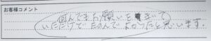 お客様から感謝の声・感謝のコメントをいただきましたので、