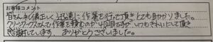 【皆さん礼儀正しく迅速に作業を行って頂きとても助かりました。クリーンワークスさんで作業を頼むのが4回目ですが、いつもきれいにしていただき感謝しています。ありがとうございました。】