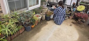 プランターも一つひとつ丁寧に運び出し、お庭にスペースを作っていきました!
