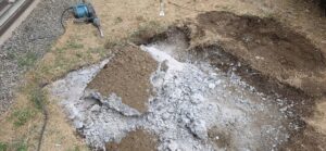 庭に芝生を敷こうと思っていたところ、自分たちではどうしても動かせないコンクリート板(土間コンクリート)が残ってしまい、専門業者を探されていたそうです。しかしなかなかどこもやってくれない…😭