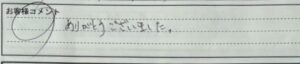 お客様から感謝の声・感謝のコメントをいただきましたので、